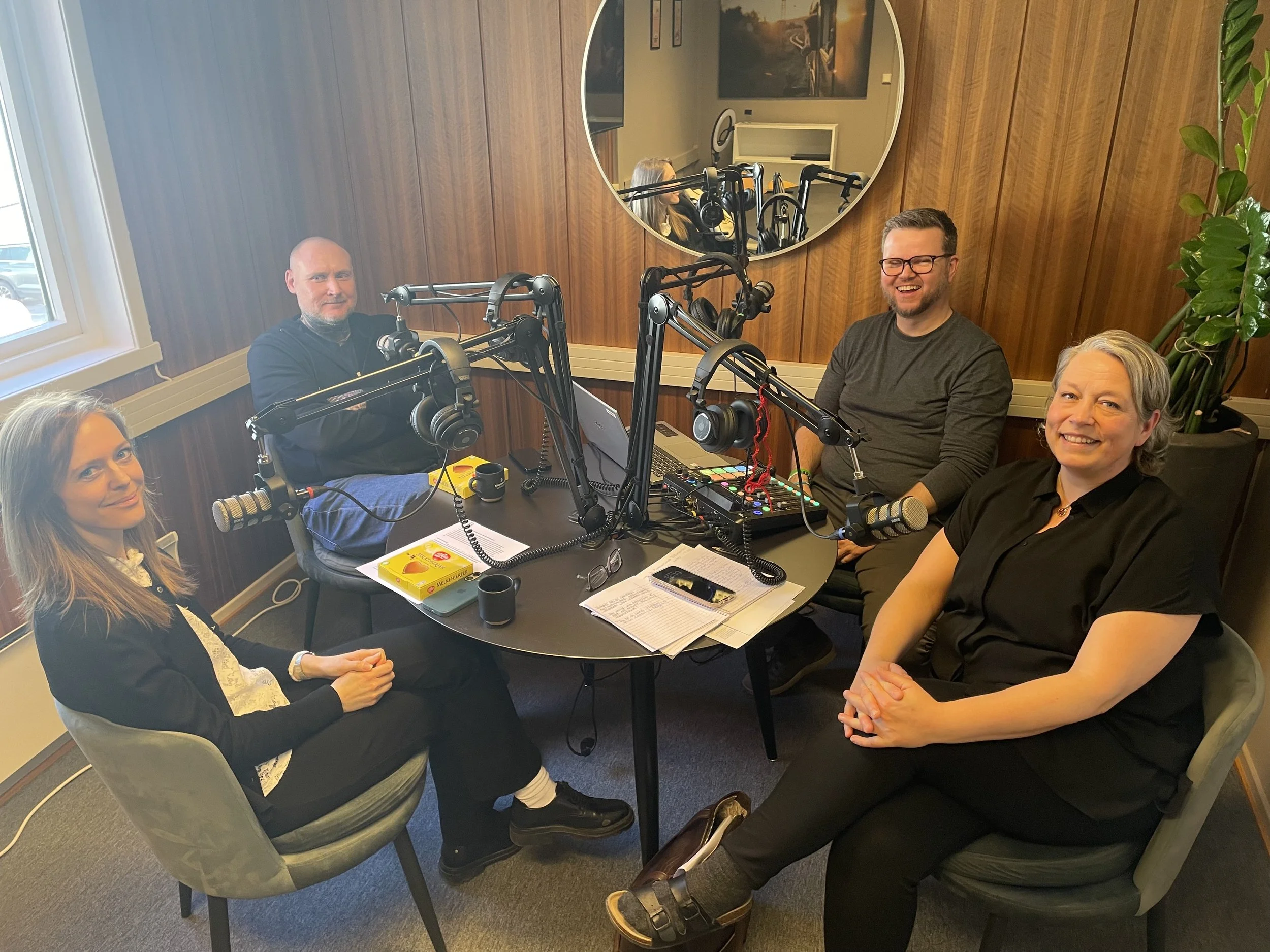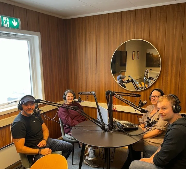 Vi har fått sponset podcastutstyr med 4 mikrofoner og headset som passer perfekt til innspilling. Flere andre fontenehus har også egen podcast, så da tok vi initiativ til å starte opp vår egen. Dette er en fin måte å nå ut til folk på.